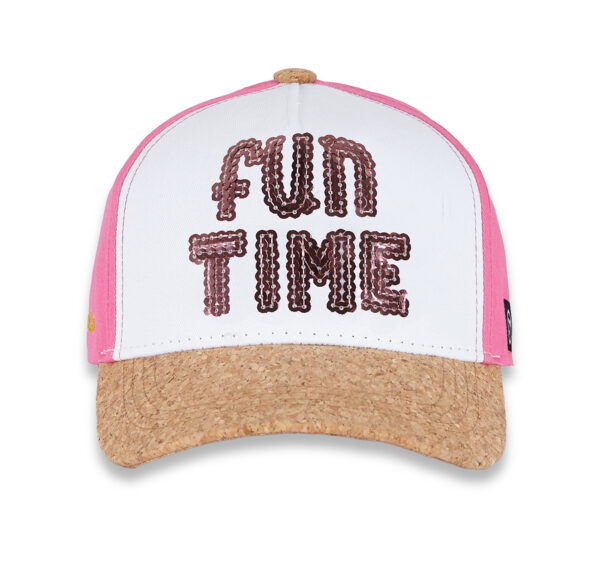 The “Fun Time Kids Cap” is designed with the joy and energy of girls in mind. This eye-catching children’s cap combines a white front panel with a natural cork visor that invites adventure. The back panels in vibrant pink add a playful touch, while the sequins forming the phrase ‘FUN TIME’ capture the essence of limitless fun. The cap is a perfect accessory for sunny days, providing shade and style to the little ones in their outdoor activities. With a comfortable fit and durable materials, it’s the ideal complement for young explorers who are always on the go.